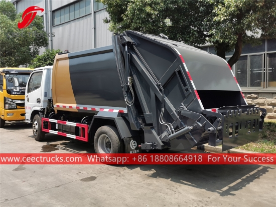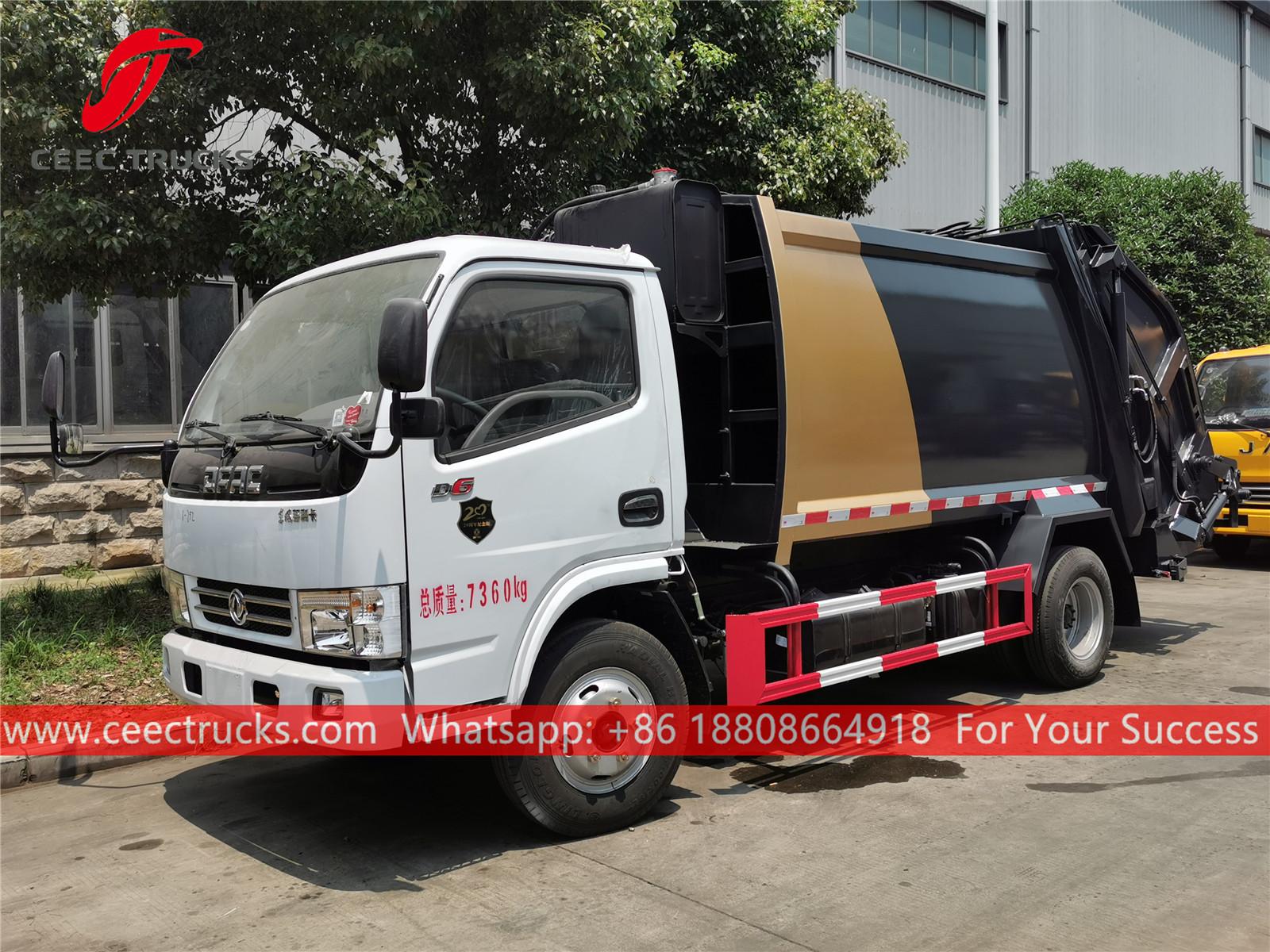 Dongfeng 5CBM Çöp Sıkıştırma Kamyonu (ayrıca denir Dongfeng çöp toplama kamyonu, arka yükleyici çöp kamyonu, hidrolik sıkıştırılmış atık kamyon Dongfeng, düşük fiyatlı arka yüklemeli çöp toplama kamyonu, 6 tekerleksıkıştırılmışçöp kamyonu) dır her türlü şehir, büyük gar, liman ve iskele, havaalanı, sanayi ve maden işletmeleri, askeri birlikler gibi yoğun nüfuslu alanlar gibi yaşam alanlarında günlük çöp taşımacılığına uygun olarak tasarlanmıştır.
