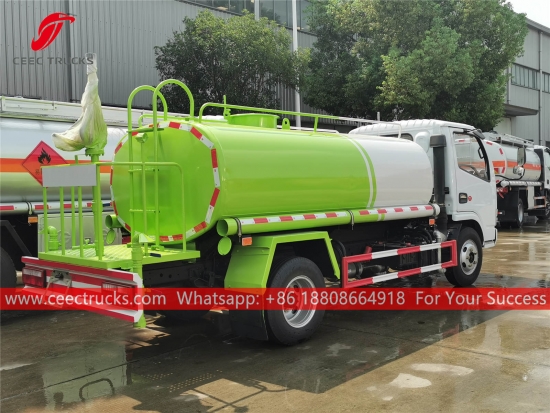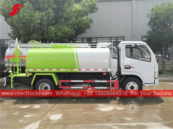 DONGFENG 5.000L su tankeri kamyonu, DONGFENG 4x2 soldan direksiyonlu şasi, 5 vitesli manuel şanzıman, YUCHAI 115HP dizel motor, ünlü marka su pompası, isteğe bağlı ön, orta ve arka püskürtme memesi. Tüm boyama ve logolar gereksinime bağlıdır.