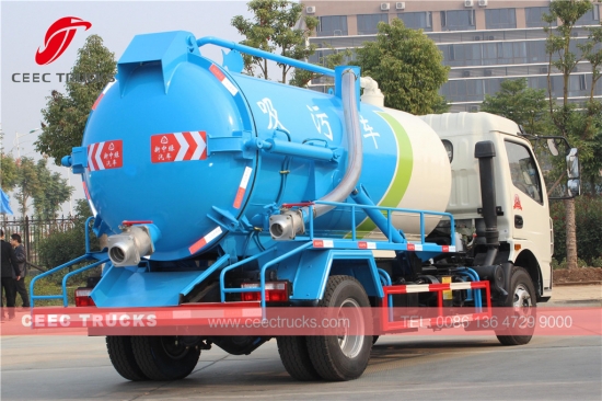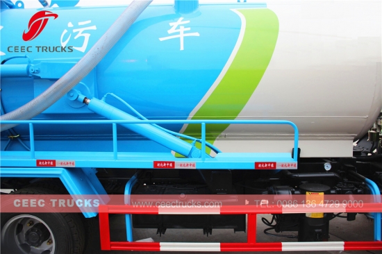 Dongfeng 8000L fosseptik boşaltıcı, CHAOCHAI 120HP dizel motor, 5 vitesli manuel şanzıman, yüksek mukavemetli çelik malzeme tankeri 8cbm'ye kadar çıkabilir, standart olarak WEILONG vakum pompası, atık boşaltma için hidrolik kaldırma cihazı, boyama ve logolar isteğe bağlıdır.