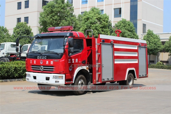 Dongfeng su köpük itfaiye aracı, 4.000 litre su tankı ve 1.000 litre köpük tankı, Dongfeng 4x2 LHD/RHD şasi, 5 vitesli manuel şanzıman, Chaochai 160HP dizel motor, boyama ve logolar gereksinime bağlıdır.