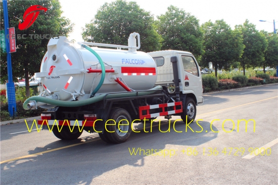 Dongfeng 4000 l kanalizasyon vakum kamyonu Ekvador'a ihraç ediliyor, DFAC 3300 mm dingil mesafesi LHD şasi, 95 HP motor satılık, 5 vitesli manuel şanzıman kolay sürüş. 5 mm'den kalın 4000 litre karbon çelik kanalizasyon tankeri, korozyon önleyici boya ve logolar gereksinime bağlıdır.