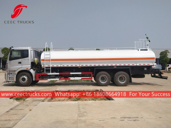 FOTON 15.000L su tankeri kamyonu, FOTON 6x4 soldan direksiyonlu şasi, 8 vitesli manuel şanzıman, CUMMINS 270HP dizel motor, ünlü marka su pompası, isteğe bağlı ön, orta ve arka püskürtme memesi. Tüm boyama ve logolar gereksinime bağlıdır.