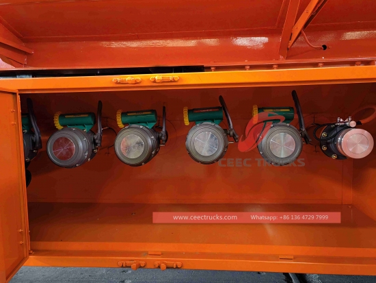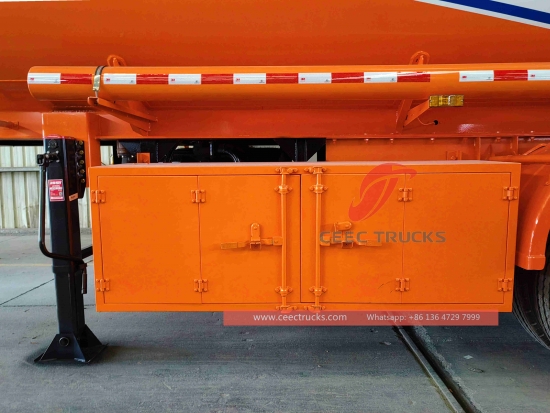 A…Tank, yakıt transfer işlemi sırasında yangına neden olabilecek kauçuk lastik tarafından üretilen statik elektriği boşaltmak için topraklanır. Talebiniz üzerine, tanka şanzıman tarafından çalıştırılan ve tankın yakıtı emmesini veya boşaltmasını kontrol eden bir güç çıkış sistemi ekleyebiliriz.