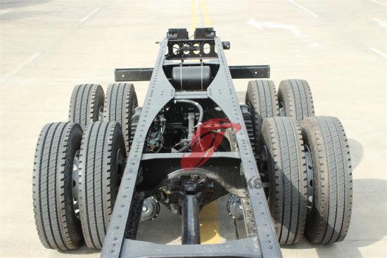 Şasi, ağır hizmet tipi kullanımın zorluklarına dayanacak şekilde dikkatlice tasarlanmış bir mühendislik şaheseridir. Kamyonun etkileyici yük kapasitesi ve çekme kabiliyetlerinin temelini oluşturan yüksek mukavemetli malzemelerden yapılmıştır. Şasinin dış boyutları 11285*2540*2985 mm'dir ve 4 akslı tasarımı, onu ulaşım dünyasında bir dev haline getirerek stabilitesini ve yük taşıma kapasitesini daha da vurgular.
