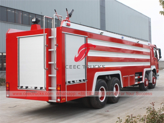 HOWO su köpüklü itfaiye aracı, 21.000 litre su tankı ve 4.000 litre köpük tankı, HOWO 8x4 LHD şase, 12 ileri manuel şanzıman, WEICHAI 336HP dizel motor, boya ve logolar ihtiyaçlara göre değişmektedir.