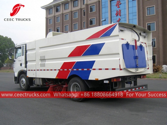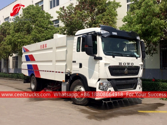 HOWO Sokak Süpürgesi (ayrıca denirsokak temizleme kamyonu, Yepyeni yol süpürme kamyonu, Kamyona Monteli Süpürge, yüksek kalite süpürme kamyonu, otoyol süpürme kamyonu HOWO, Yol süpürme makinesi üreticisi) dır Asfalt beton ve çimento beton yol yüzeyli mahalle, şehir, otoyol, şantiye, üst geçitler, köprüler, meydanlar, havaalanları ve rıhtımların günlük süpürülmesi için tasarlanmıştır.