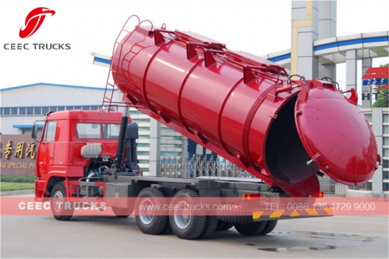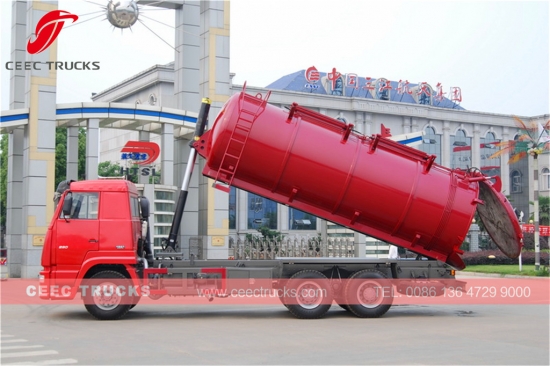 HOWO marka 266HP dizel motor, Manuel FAST 9 vitesli şanzıman, yüksek mukavemetli karbon çelik malzemeden tanker 18cbm'ye kadar çıkabiliyor, standart olarak WEILONG vakum pompası, tankın yükselmesi için hidrolik kaldırma cihazı, boyama ve logolar isteğe bağlı olarak değişiyor.