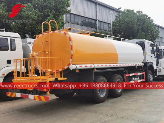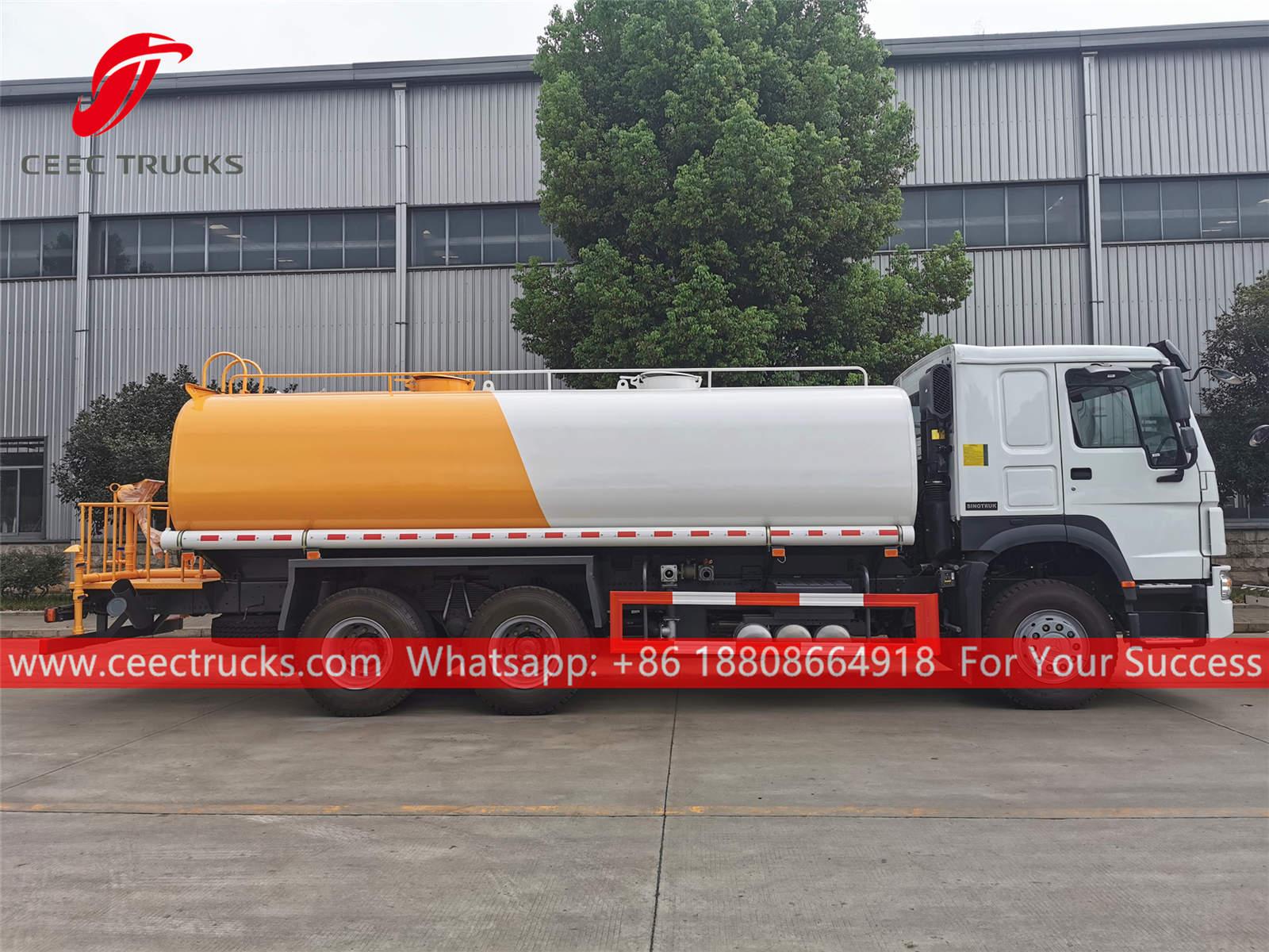 HOWO 18.000L su püskürtme kamyonu, HOWO 6x4 soldan direksiyonlu şasi, SINOTRUK 10 vitesli manuel şanzıman, SINOTRUK 266HP dizel motor, ünlü marka su pompası, isteğe bağlı ön, orta ve arka püskürtme memesi. Tüm boyama ve logolar gereksinime bağlıdır.