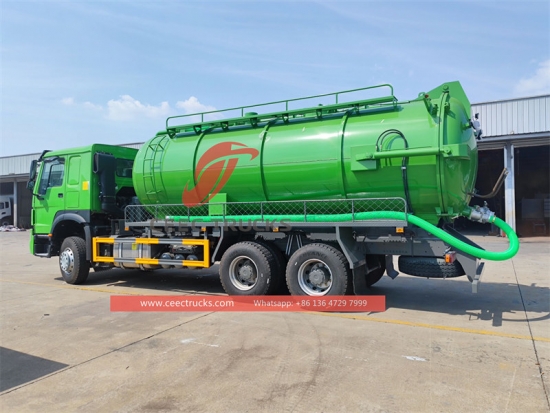HOWO 6×4 Vakum Tanker Kamyonu (ayrıca vakumlu kanalizasyon kamyonu, kanalizasyon emici, HOWO kanalizasyon kamyonu, kanalizasyon boşaltıcı, foseptik tankı kamyonu, foseptik boşaltıcı olarak da adlandırılır) kirli su, çamur, septik, ham petrol ve küçük taşlar, tuğlalar gibi katı maddeler gibi sıvıları toplamak, taşımak ve boşaltmak için kullanılır. Kanalizasyon, fosseptik, fosseptik çukuru, su yolu vb. temizlemek için uygundur. Çevre ve sanitasyon alanında yaygın olarak kullanılır.