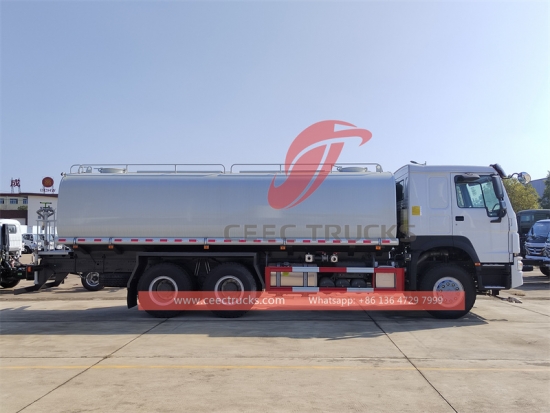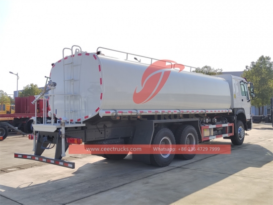 Howo 20.000L su tankeri kamyonu, Howo 6x4 soldan direksiyonlu şasi, 8 vitesli manuel şanzıman, WD615.47 371HP dizel motor, ünlü marka su pompası, isteğe bağlı ön, orta ve arka püskürtme memesi. Tüm boyama ve logolar gereksinime bağlıdır.