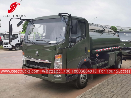 HOWO 3.000L su püskürtme kamyonu, HOWO 4x2 soldan direksiyonlu şasi, 5 vitesli manuel şanzıman, YUNNEI 95HP dizel motor, ünlü marka su pompası, isteğe bağlı ön, orta ve arka püskürtme memesi. Tüm boyama ve logolar gereksinime bağlıdır.