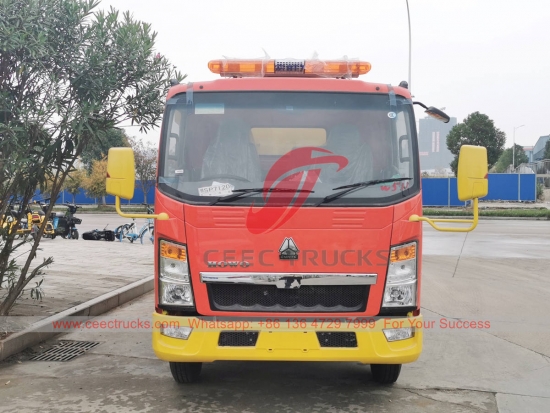 HOWO 5000 litre yol süpürme kamyonu, HOWO 4x2 sağdan direksiyonlu şasi, 6 vitesli manuel şanzıman, YUNNEI 116 HP dizel motor, paslanmaz çelik toz haznesi ve temiz su gövdesi, İtalya Motorlu 4 fırça sistemi, rahat kullanım için kabin elektrik kontrolü. Tüm boyama ve logolarihtiyaca göre değişir.