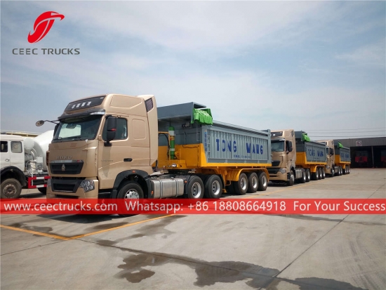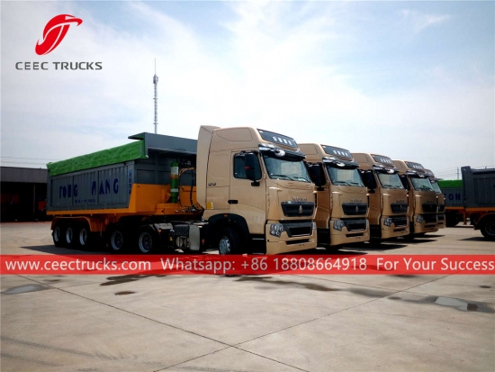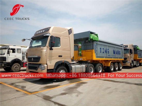 SINOTRUK HOWO 6x4 ağır hizmet tipi traktör kafası, SINOTRUK 440HP dizel motor, 12 vitesli manuel şanzıman, maksimum çekme ağırlığı 40.000 kg'a kadar çıkabilir, boyama ve logolar gereksinime bağlıdır.