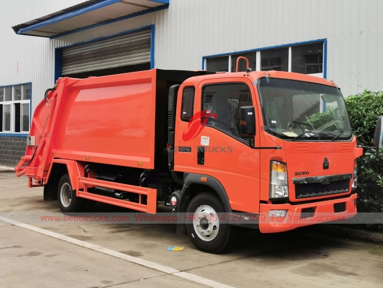 HOWO RHD 8cbm çöp sıkıştırma kamyonu, kamyon şasisi YUCHAI 160HP dizel motor, manuel 6 vitesli şanzıman dişlisi kullanır. Kolay kullanım için CAN-BUS kontrol kutusu. Tüm boyama ve logolar müşterinin gereksinimlerine göre yapılır.