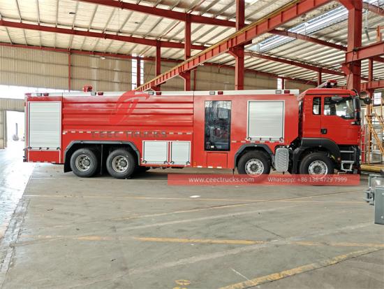 8×4, RHD/LHD can be optionalİtfaiye kurtarma özel aracı, sağlam Howo 8x4 ağır hizmet tipi şasi üzerine inşa edilmiştir. Güçlü 540 beygir gücündeki motoruyla, çeşitli zorlu yollara meydan okumak ve etkili acil kurtarma amacına ulaşmak için yüksek yangın söndürme kapasitesine sahiptir. Howo 8x4 itfaiye aracı, 6000 litrelik büyük kapasiteli su deposu, 2000 litrelik köpük deposu ve 65-85 metreye kadar uzağa püskürtebilen profesyonel uzaktan kumandalı elektronik yangın topu ile donatılmıştır. Kontrol paneli dili isteğe bağlı olup kullanımı kolaydır. Aynı zamanda, farklı ihtiyaçları karşılamak için çeşitli opsiyonel konfigürasyonlar da sunulmaktadır. Bu Howo ağır hizmet tipi itfaiye kurtarma aracı, yangın güvenliği için sağlam koruma sağlar ve mükemmel performans ve esneklik sunar. Bekar taksi ve itfaiyeci kabininde Yangın söndürme ekipmanlarını yüklemek ve iyi sürüş performansını korumak için yeterli alan ve kalite sağlar. itfaiye aracı barındırabilir 6 itfaiye araçlarına uygun olup, sürücünün her türlü hava koşulunda konforlu kalabilmesini sağlamak için klima ile donatılmıştır.