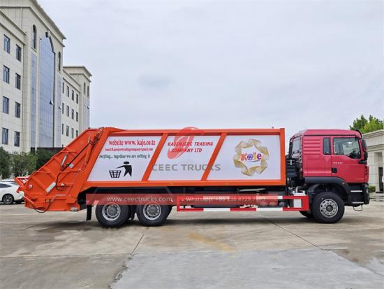 HOWO HW76, NX cabin is optionalBu Howo 6 x4 ağır görev comp aktör Çöp kamyonu, sanitasyon mühendisliği alanında olağanüstü bir çalışma ve kentsel temizlik için stratejik bir silahtır . WD615.47 motorla donatılmış olup, güçlü bir çıkışa sahiptir. 371 HP 9.726L hacimli, turboşarj ve ara soğutma teknolojisine sahip. 33 ton S toplam ağırlık yapılandırması ve 20 ton S yük kapasitesi büyük ve orta ölçekli şehirlerin günlük çöp toplama ihtiyaçlarını tam olarak karşılayabilir.