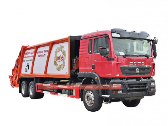 The Howo 6 x4 ağır görev comp aktör Çöp kamyonu, sanitasyon mühendisliği alanında olağanüstü bir çalışma ve kentsel temizlik için stratejik bir silahtır . WD615.47 motorla donatılmış olup, güçlü bir çıkışa sahiptir. 371 HP 9.726L hacimli, turboşarj ve ara soğutma teknolojisine sahip. 33 ton S toplam ağırlık yapılandırması ve 20 ton S yük kapasitesi büyük ve orta ölçekli şehirlerin günlük çöp toplama ihtiyaçlarını tam olarak karşılayabilir.