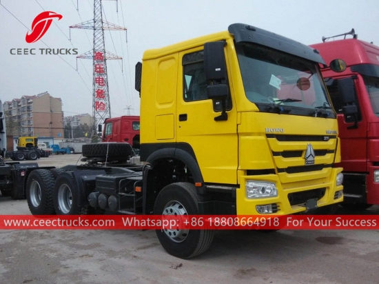 SINOTRUK HOWO 6x4 ağır hizmet tipi çekici, SINOTRUK 371HP dizel motor, 10 vitesli manuel şanzıman, maksimum çekme ağırlığı 40.000 kg'a kadar çıkabilir, boya ve logolar ihtiyaçlara bağlıdır.