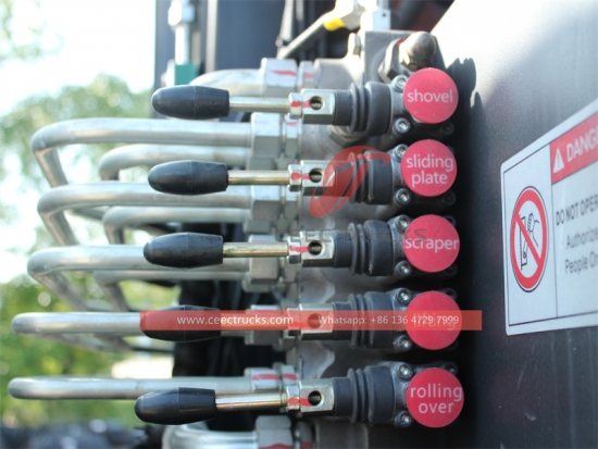 CEEC KAMYONLARI Üretilen çöp sıkıştırma gövdesi, 8 metreküp hacimli kutu, çöp kutusu çevirme cihazı ile arka, 120L / 240L / 660L / 1100L çöp kutularını çevirebilir, kontrol paneli + manuel kol + kabin içi kontrollü. Yeni düz yay şeklindeki araba gövdesi, araba gövdesinin malzemesi Wuhan Demir ve Çelik'in yüksek kaliteli karbon çeliğidir, etkili sıkıştırma hacmi 8 metreküptür, PLC tek tuşla çalışma kontrolü, entegre el feneri çalışma modu, her iki tarafta çift elektrik kontrolü, kabin çalışması ve güçlendirilmiş zemin desteği, İki yönlü sıkıştırma, açık ve kolay temizlenebilir kanalizasyon tankı.