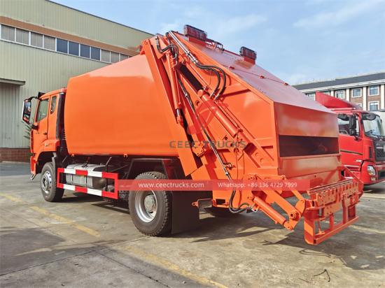 Howo çöp sıkıştırma kamyonu, Fast 10 ileri ve 2 geri vitese sahiptir. Sağlam şasisi ve esnek direksiyonuyla, zorlu yol koşullarında dengeli ve verimli bir çalışma sağlar. 15 CBM 4 mm kalınlığında Q235 özel çelikten üretilen kavisli tank, tek parça kalıplama yöntemiyle üretilmiş olup, 1:3,4 sıkıştırma oranıyla en üst düzey çöp sıkıştırma verimliliği sağlar. Tam otomatik hidrolik kontrol sistemi, yükleme ve boşaltma çevrimlerini 40-45 saniyeye indirir. PLC akıllı kontrol sistemiyle donatılmış olup, kullanımı kolay ve hızlıdır. Manuel modda, operatör çöp bölmesinin sıkıştırma, boşaltma ve diğer işlemlerini tamamlamak için kumanda kolunu ve elektrikli kontrol düğmelerini kullanabilir.