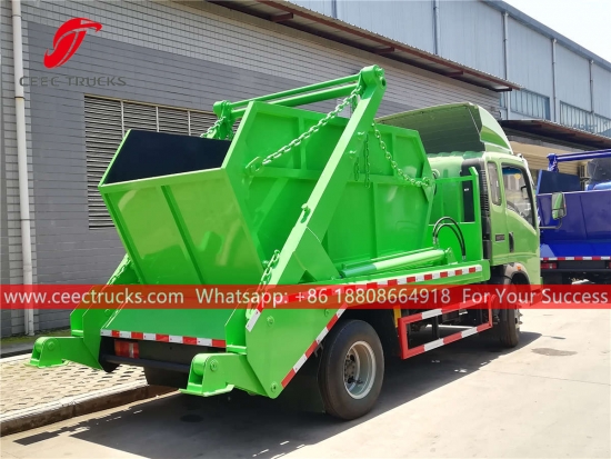 HOWO 6cbm skip yükleyici çöp kamyonu, HOWO 4x2 RHD şasi, manuel 6 vitesli şanzıman, 120HP dizel motor, yüksek mukavemetli çelik salıncak kolu sistemi, Hidrolik kontrol cihazı ve Elektrik kontrol kutusu opsiyonel. Tüm boyama ve logolar gereksinime bağlıdır.