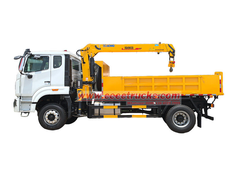 HOWO tek dingilli 4 tonluk kamyon üstü vinç, inşaat, lojistik, altyapı, madencilik ve diğer alanlardaki uygulamalar için uygundur. Araç, HOWO şasisi üzerine modifiye edilmiş olup, 4600 mm dingil mesafesine sahiptir. WEICHAI WP10.300E22 300 HP motor ve HW13710 10 vitesli şanzıman ile donatılmıştır. Üst kısımda 3800x2400x450 mm boyutlarında bir kargo kutusu ve 4 ton kaldırabilen bir XCMG SQ4SK2Q vinç bulunur. Vinç, destek ayaklarının geri çekilmesini ve uzatılmasını ve vincin geri çekilmesini ve dönmesini kontrol etmek için her iki taraftaki manuel hidrolik kollarla çalıştırılabilir.