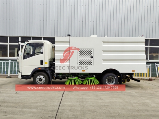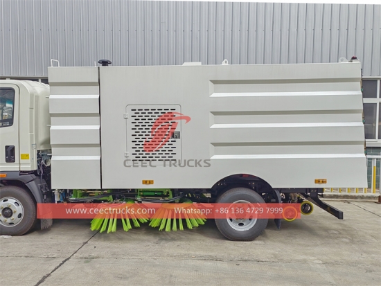 HOWO Sokak Süpürgesi (ayrıca denirsokak temizleme kamyonu, Yepyeni yol süpürme kamyonu, Kamyona Monteli Süpürge, yüksek kalite süpürme kamyonu, otoyol süpürme kamyonu HOWO, Yol süpürme makinesi üreticisi) dır Asfalt beton ve çimento beton yol yüzeyli mahalle, şehir, otoyol, şantiye, üst geçitler, köprüler, meydanlar, havaalanları ve rıhtımların günlük süpürülmesi için tasarlanmıştır.