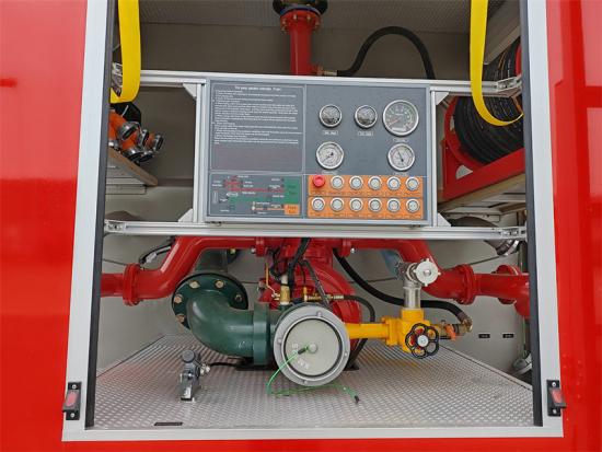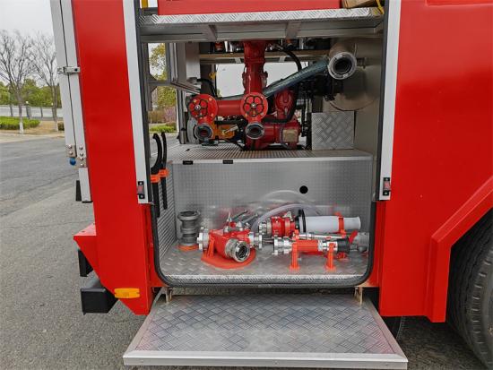 Yangın pompası, 1,6-2,5 MPa basınç aralığına ve 80-120 kg/sn akış hızına sahip PTO ile çalışır. Yangın topu, 60-100 kg/sn püskürtme hızına ve 40-60 metre menzile sahip olup, çeşitli yangın durumlarına etkili bir şekilde müdahale edebilir. Howo itfaiye aracı Ayrıca kürek, levye, balta ve kesici aletler gibi standart yangın kurtarma ekipmanlarının tamamı ile donatılmış olup, merdiven ve projektörler opsiyoneldir.