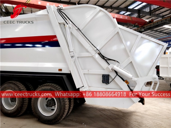 ISUZU 20cbm sıkıştırma atık aracı, kamyon şasisi ISUZU 300HP dizel motor, FAST 9-shift şanzıman dişlisi kullanır. Kolay kullanım için PLC kontrol kutusu. Tüm boyama ve logolar müşterinin gereksinimlerine göre yapılır.