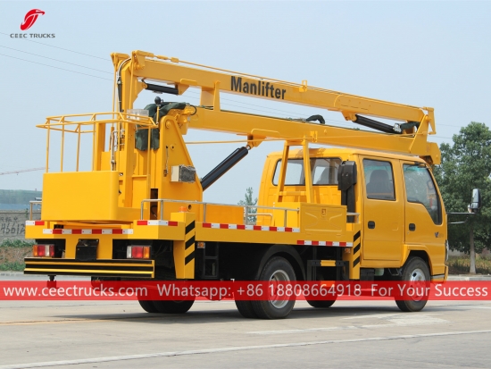 ISUZU 16m Man Lifter Kamyonu (Ayrıcaisminde Yüksek Platformlu Çalışma Kamyonu ISUZU, ISUZU Adam Kaldırma Kamyonu, yeni Kamyon üstü hava platformu, sıcak satış kol kaldırma kepçe kamyonu, ISUZU kamyon üstü bomlu kaldırıcı, iyi fiyat Yüksek Platformlu Çalışma kamyonu)trafik ışıkları, sokak lambaları, peyzaj ağaçları bakımı, tabela temizliği/yerleştirme ve diğer yüksekten yapılan işler için idealdir.