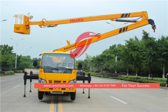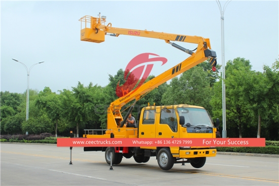 ISUZU 18 m Teleskopik Hava Platformlu Kamyon (Ayrıcaismindeisuzu 18 metre bomlu kamyon, ISUZU 18 metre hava platformlu kamyon, ISUZU 18 metre bomlu kamyon ) trafik ışıkları, sokak lambaları, peyzaj ağaçları bakımı, tabela temizliği/yerleştirme ve diğer yüksekten yapılan işler için idealdir.