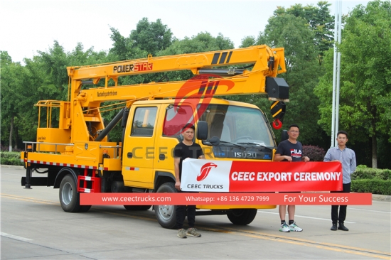 ISUZU 16m kepçe vinç kaldırma kamyonu, Premium hava platformlu kamyon üreticisi, 5 vitesli manuel şanzıman, ISUZU 98HP dizel motor, boya ve logolar gereksinime bağlıdır. ISUZU 4*2 tahrikli kamyon şasisinde CEEC'in en son teknolojisi ile
