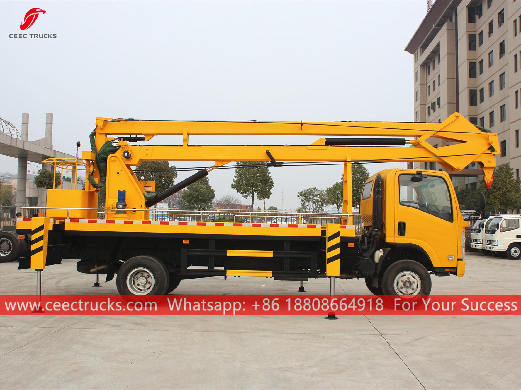 ISUZU 18m Adam Kaldırma Kamyonu (Ayrıcaisminde Havadan Platformlu Kamyon ISUZU, ISUZU Manlifter, ISUZU Kamyon üstü bomlu kaldırıcı, sıcak satış kol kaldırma kepçeli kamyon, ISUZU Yüksek Platformlu Operasyon kamyonu, düşük fiyatlı havadan platformlu araç)trafik ışıkları, sokak lambaları, peyzaj ağaçları bakımı, tabela temizliği/yerleştirme ve diğer yüksekten yapılan işler için idealdir.