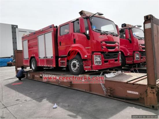 Yeni yıl için tasarlanmış ve özelleştirilmiş ISUZU GIGA 4X itfaiye aracı yangın pompasıyla donatılmışYangın söndürme işi için servis. ISUZU yeni GIGA 4X kamyon şasisi temel alınarak, 205HP ve 5193ml emisyonlu 4HK1-TCG60 dizel motor, EURO 6 emisyon standardı monte edilmiştir. Özelleştirilmiş 5000L karbon çelik su tankeri ve 500L paslanmaz çelik köpük tankeri, monte edilmiş CB10/40 yangın pompası ve PL32 yangın monitörü, ayrıca mavi LED dönüş ışığı, tam set yangın kurtarma ekipmanı ile monte edilmiştir, hepsi itfaiye aracını uluslararası yangın çalışmaları için popüler hale getirmiştir.