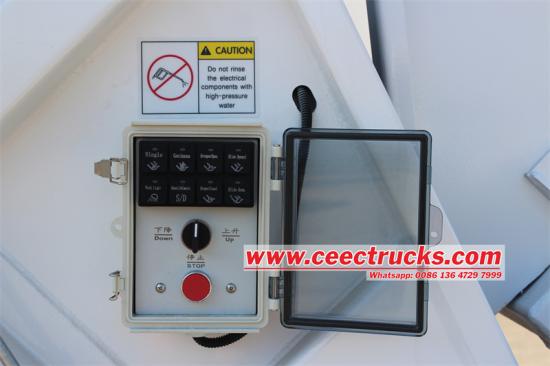 Kabin elektronik kontrol kutusu, Durdurma ve Çalıştırma, Güç Aktarma, Çalışma Lambası, Bagaj Kapağı Yukarı/Aşağı, Yükleme Modu, Boşaltma Modu, Kürek İtme/Çekme vb. dahil olmak üzere çeşitli işlev düğmelerini entegre eder. Elektronik kontrol kutusu, çöp sıkıştırma, çevirme, boşaltma vb. gibi çöp kamyonunun otomatik çalışmasını gerçekleştirebilir. İşlem basittir ve sürücünün kabindeki araç çalışmasını hızlı bir şekilde kontrol etmesi için uygundur.