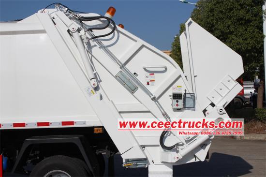 Bagaj kapağı kontrol kutusu, Tek Döngü, Sürekli Döngü, Kazıyıcı Açık/Kapalı, Yukarı/Aşağı Kaydırma, Manuel/Otomatik, Çalışma Işığı, Eğme Cihazı Yukarı/Aşağı ve Acil Durdurma dahil olmak üzere birden fazla çalışma modunu destekler. Bagaj kapağı kontrol kutusu esas olarak bagaj kapağının ve sıkıştırma cihazının hassas kontrolü için kullanılır ve araç dışında çöp yükleme, boşaltma ve temizleme işlemleri için uygundur.