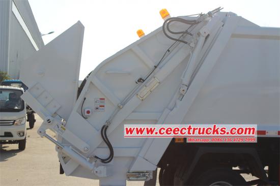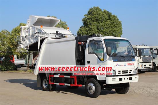 Isuzu 600P 4x4 arka yükleyici sıkıştırma kamyonu çöp toplama ve bertarafı için özel bir araçtır. Isuzu 600P 4x4 hafif şasi, 3815 mm dingil mesafesi, 4KH1CN6LB 120HP motor, Isuzu MSB 5 vitesli şanzıman, 2999 ml deplasman ile modifiye edilmiştir, maksimum tork 290 N.m'dir. Üst kısım 8 kübik karbon çelik çöp kutusu, kuyrukta üçgen kova yarı kapalı çevirme mekanizmasıdır. Araç PLC elektronik kontrol sistemi, hidrolik valf kontrol sistemi ile kontrol edilir.