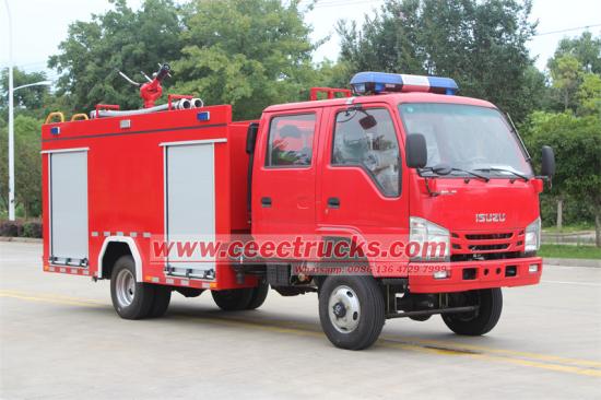 Isuzu offroad püskürtmeli Su İtfaiye Aracı 3000 Litre ISUZU 4x4 offroad model kamyon şasisinden yeniden düzenlendi, ISUZU kamyon şasisi QL1073BUHAY, . Şasi üreticisinin orijinal itfaiyeci yolcu mürettebat kabini numarası 2+4 kişi olan Isuzu itfaiye aracı. Şasi motor şanzımanı gücü tahrik mili aracılığıyla yangın pompasına iletir. Yangın pompası tanktaki suyu yangın monitörü aracılığıyla püskürtür.Ana komponentler arasında sandviç tip PTO, şanzıman mekanizması, yangın pompası, yangın monitörü, tank, su boru hattı, ekipman bölmesi ve yangınla mücadele ekipmanları, elektrik kontrol sistemi vb. bulunmaktadır.