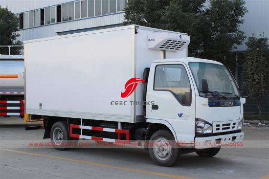 ISUZU 5T Soğutmalı kamyon, ISUZU soldan direksiyonlu model 4×2 şasi, MSB 5 vitesli manuel şanzıman, ISUZU 130HP motor. Yüksek performans için Çin'in ünlü soğutma üniteleriyle donatılmıştır, van kapasitesi isteğe bağlı olarak 5-25T olabilir.