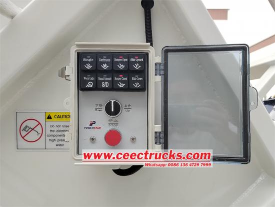 Üst yapı, 4 mm yan kalınlığı ve 5 mm alt kalınlığı olan, dayanıklı ve büyük kapasiteli 10 metreküp karbon çelik sıkıştırılmış atık tankına sahiptir. Kavisli sıkıştırıcı gövdesi, güçlü ve güvenilir sıkıştırma sağlamak için en kaliteli Çin markası Hefei Wanye hidrolik silindirlerle donatılmıştır.