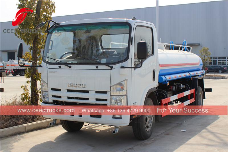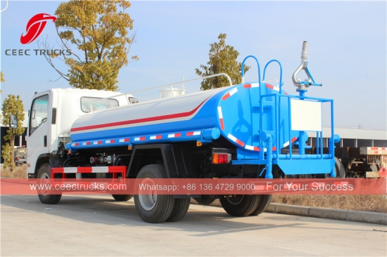 ISUZU 7CBM Su Tankeri Kamyonu (ayrıca denir Su pompası, Su püskürtme kamyonu, Su tankeri kamyonu, Su tankı kamyonu, Taşınabilir su tankeri)yol yıkama, ağaç ve çim yeşillendirme, yüksek bina temizliği, yol ve fabrika inşaatı için kullanılır. Yıkama, sulama, su taşıma ve yangınla mücadele işlevleri vardır.