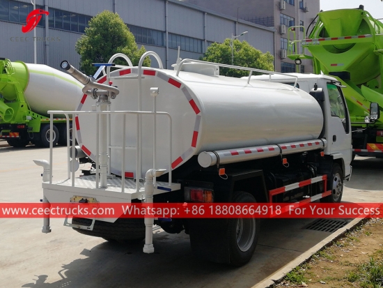 ISUZU 5.000L su tankeri kamyonu, ISUZU yeni ELF soldan direksiyonlu şasi, MSB 5 vitesli manuel şanzıman, ISUZU 130HP dizel motor, ünlü marka su pompası, isteğe bağlı ön, orta ve arka püskürtme memesi. Tüm boyama ve logolar gereksinime bağlıdır.