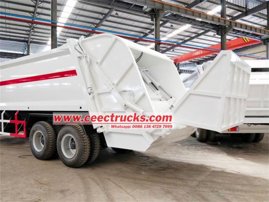 Sokak boyunca çöp toplayan temizlik işçilerinin verimliliğini artırmak için, personel çöpleri çöp kamyonunun arkasında bulunan çöp kovasına yükler. Çöp kamyonunda bulunan hidrolik silindir, çöpü çöp kovasından aracın içine aktarmak için sıkıştırma cihazını çalıştırır.kamyon ve compaktöro. Çöp kamyonu gövde üreticileri, beygir gücü, hacim ve sürüş yöntemleri gibi projenin özel ihtiyaçlarına göre çeşitli gerekli yapılandırmaları karşılayan ürünleri özelleştirebilir ve tasarlayabilir. Özelleştirilmiş çöp kamyonları aracılığıyla, farklı ülkelerin çöp toplama ve taşıma ortamlarına daha iyi uyum sağlayabilir ve kentsel çevre sanitasyonu ve uyumlu ortak yaratımı iyileştirme nihai hedefine ulaşabiliriz.