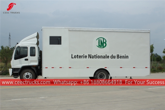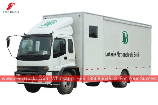 ISUZU FTR Açık Hava Gösteri Kamyonu (ISUZU Mobil Sahne Kamyonu, Led mobil gösteri kamyonu, kaliteli led reklam kamyonu, mobil sahne gösteri aracı, mobil dijital sahne kamyonu, LED ekran kamyonu olarak da adlandırılır)mobil performans, reklam, tanıtım ve propaganda amaçlı kullanılmaktadır.