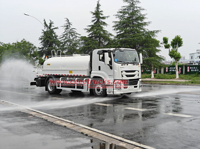Isuzu FTR içme suyu tankeri (Ayrıca Isuzu GIGA su taşıma kamyonu, Isuzu kamyon su tankı, Isuzu FTR su tankeri, Isuzu içme suyu kamyonu, Isuzu 4x2 mobil su tankeri olarak da adlandırılır) Endüstriyel veya tarımsal su olsun, suyun taşınması ve temini için kullanılır. Geniş kapasiteli su deposu ve yüksek basınçlı püskürtme sistemiyle donatılmış olup, yan püskürtme, arka püskürtme ve yüksek basınçlı tabanca nozulları gibi çok modlu operasyonlar sayesinde yol tozunun azaltılması, yeşillendirme sulama, soğutma ve ısı tahliyesi ve acil yangın söndürme gibi işlevleri yerine getirebilir.