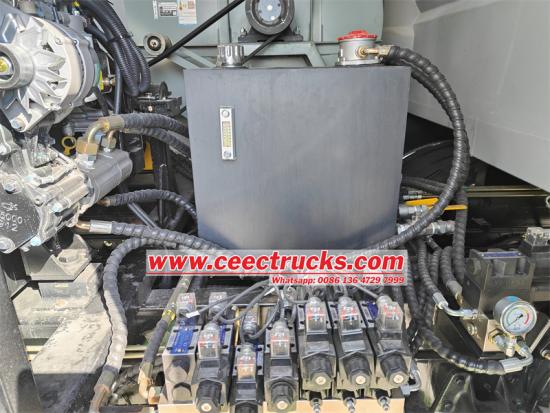 Isuzu FVR 12 metreküp yol süpürme aracı, etkili ve verimli temizlik sağlamak için etkileyici teknik özelliklere sahip yüksek basınçlı su sistemiyle donatılmıştır. Sistem basıncı 10 MPa'ya ulaşarak inatçı kir ve döküntüleri temizlemek için yeterli güç sağlar. Su pompasının dönüş hızı dakikada 1150 devirdir ve tutarlı ve güçlü bir su akışı sağlar.