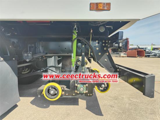 Isuzu FVR 12m3 yol süpürme makinasının temizleme sistemi temel olarak temizleme fırçası, yüksek basınçlı su pompası, negatif basınçlı toz emme cihazı ve vantuzdan oluşmaktadır.