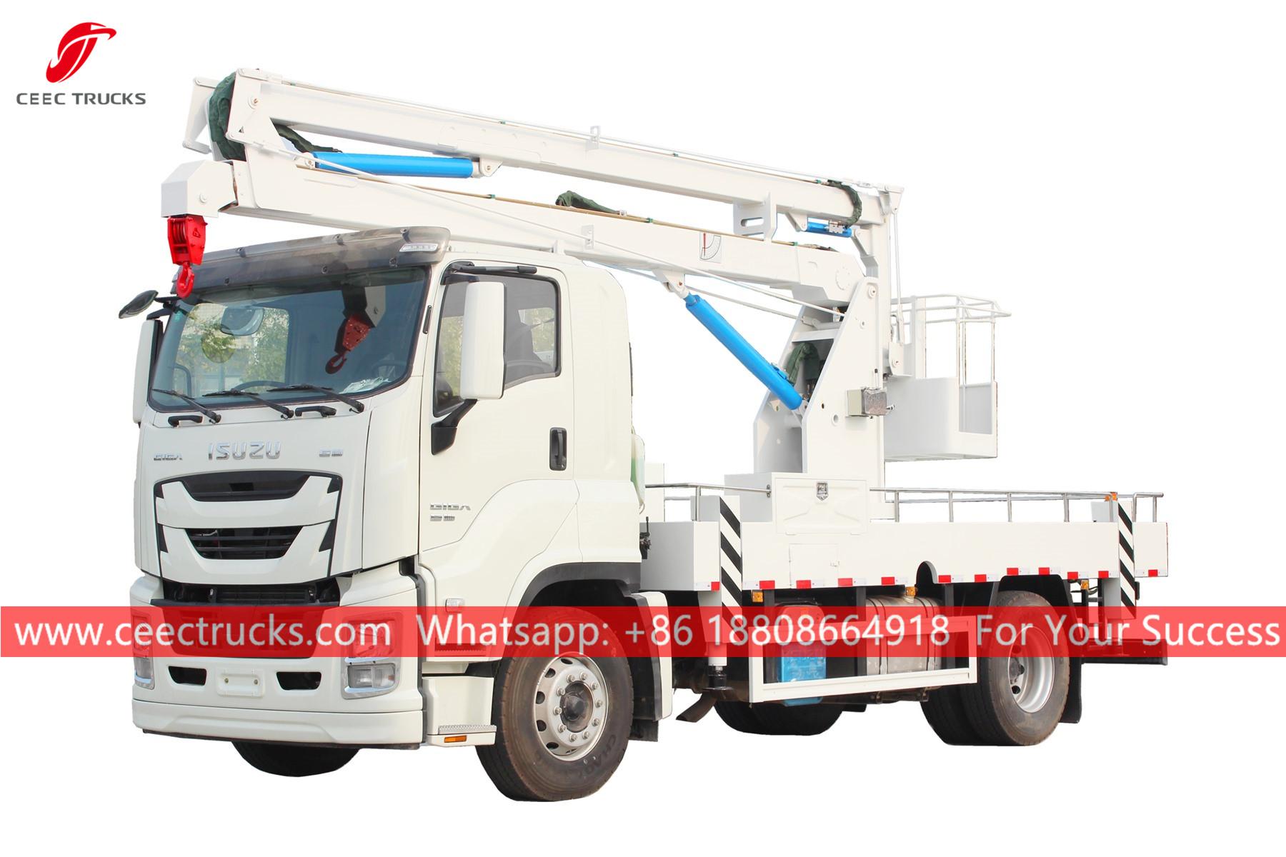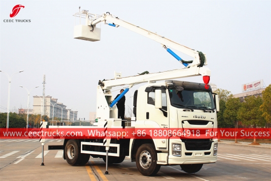 ISUZU GIGA 16m Havadan Platformlu Kamyon (Ayrıcaisminde ISUZU GIGAHavadan Çalışma Kamyonu, ISUZU Manlifter Kamyonu, ISUZU GIGA Kamyona monteli hava platformu, kaliteli kol kaldırma kovası aracı, ISUZU GIGA kamyona monteli bomlu kaldırıcı, ISUZU GIGA Yüksek Platformlu Operasyon kamyonu)trafik ışıkları, sokak lambaları, peyzaj ağaçları bakımı, tabela temizliği/yerleştirme ve diğer yüksekten yapılan işler için idealdir.