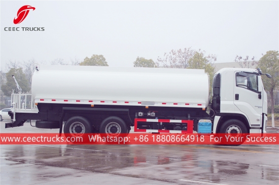ISUZU 20.000L su tankeri kamyonu, ISUZU GIGA soldan direksiyonlu şasi, ZF 16 vitesli manuel şanzıman, ISUZU 380HP dizel motor, ünlü marka su pompası, isteğe bağlı ön, orta ve arka püskürtme memesi. Tüm boyama ve logolar gereksinime bağlıdır.