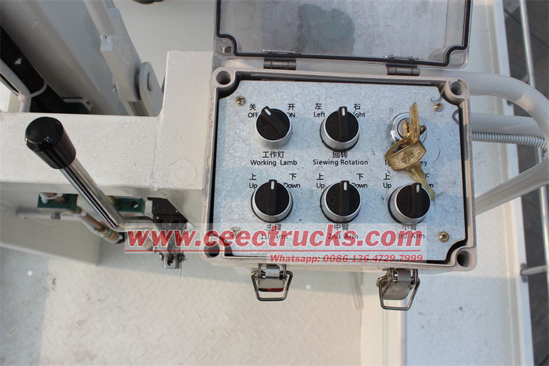 20M Isuzu GIGA 3 Bölümlü Katlanır Kollu Bomlu Havadan Çalışma Aracı, genlik kontrolü, otomatik gaz kelebeği, yük, genlik, yükseklik göstergesi ve diğer çalışma bilgilerini gerçekleştirebilen akıllı kontrolör ve LCD ile donatılmış tam otomatik bir uzaktan kumanda sistemi kullanır.Isuzu GIGA 20m mobil bomlu kaldırma kamyonu aşağıdaki gibi koltuklu çalışma prensibine sahiptir: